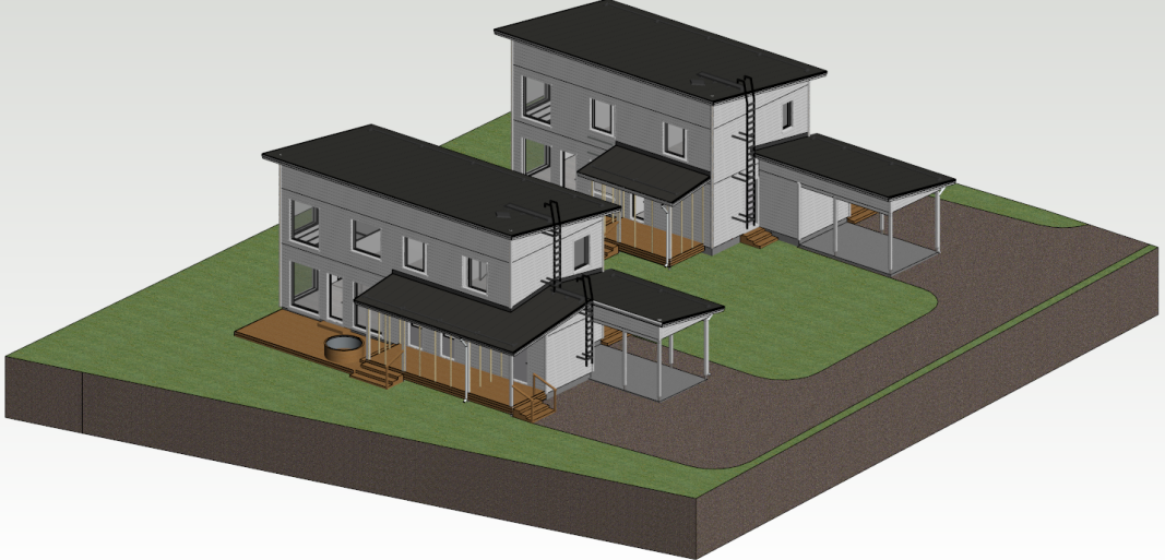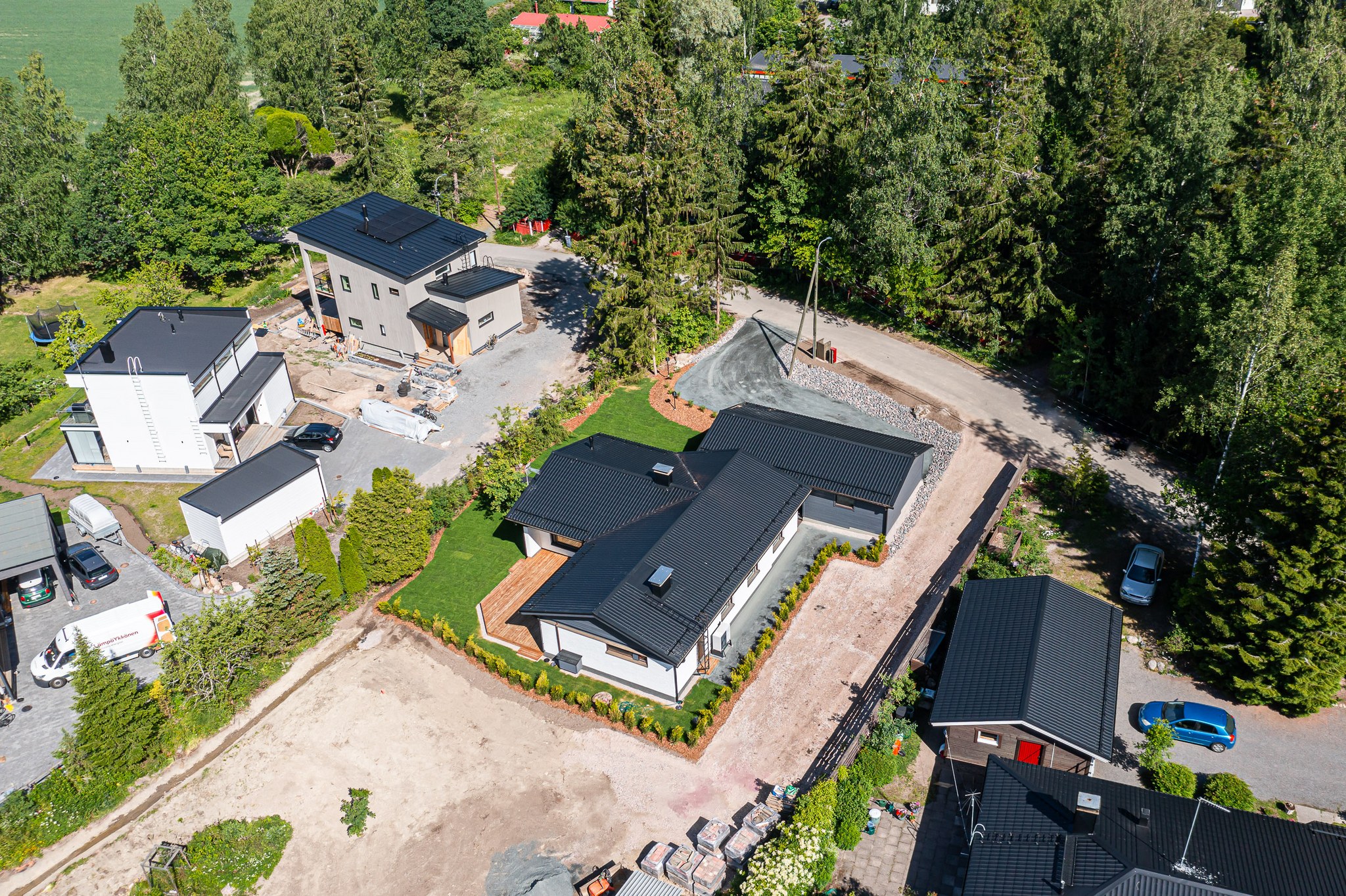 Tontille rakennettiin kaksi kahdessa tasossa olevaa omakotitaloa. Tontti on jaettu hallinnanjakosopimuksella kahteen osaan. Talot valmistuivat loppuvuodesta 2025. Molemmat talot on myyty.
